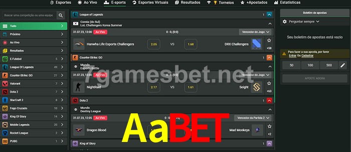 O Aabet oferece uma grande seleção de opções de apostas em e-sports com probabilidades competitivas